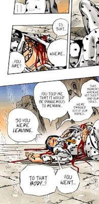 (me parece haber dado lo suficiente para poder construir un headcanon consistente y congruente con el canon, quedando algo como "Diavolo usa vilmente a Doppio"; aún con esas, el tono de las situaciones entre ambos enfatiza, a mi parecer, 1 lo confiable que es Doppio y 2 que Doppio es la clave del éxito pero no lo convierte en mártir ni destaca la tristeza o ironía de ser usado, vaya que siento que faltaría ese elemento "poético" que en cambio si está en el paralelismo de las infancias de Giorno y Diavolo)